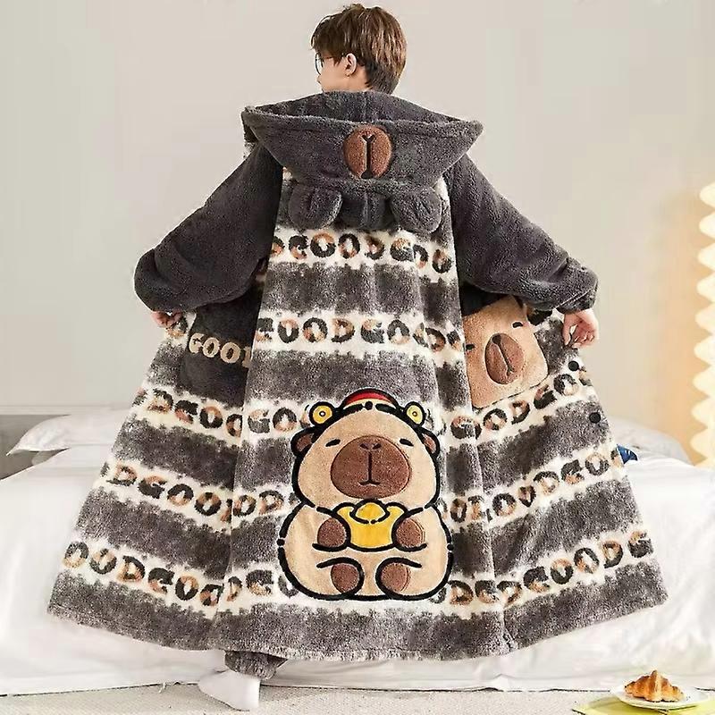 Anime Capybara Men Pajamas Suit Winter Coral Fleece Nightgown Thickened Warm Large Size Cartoon Hooded Home Cute Suit Set Gift