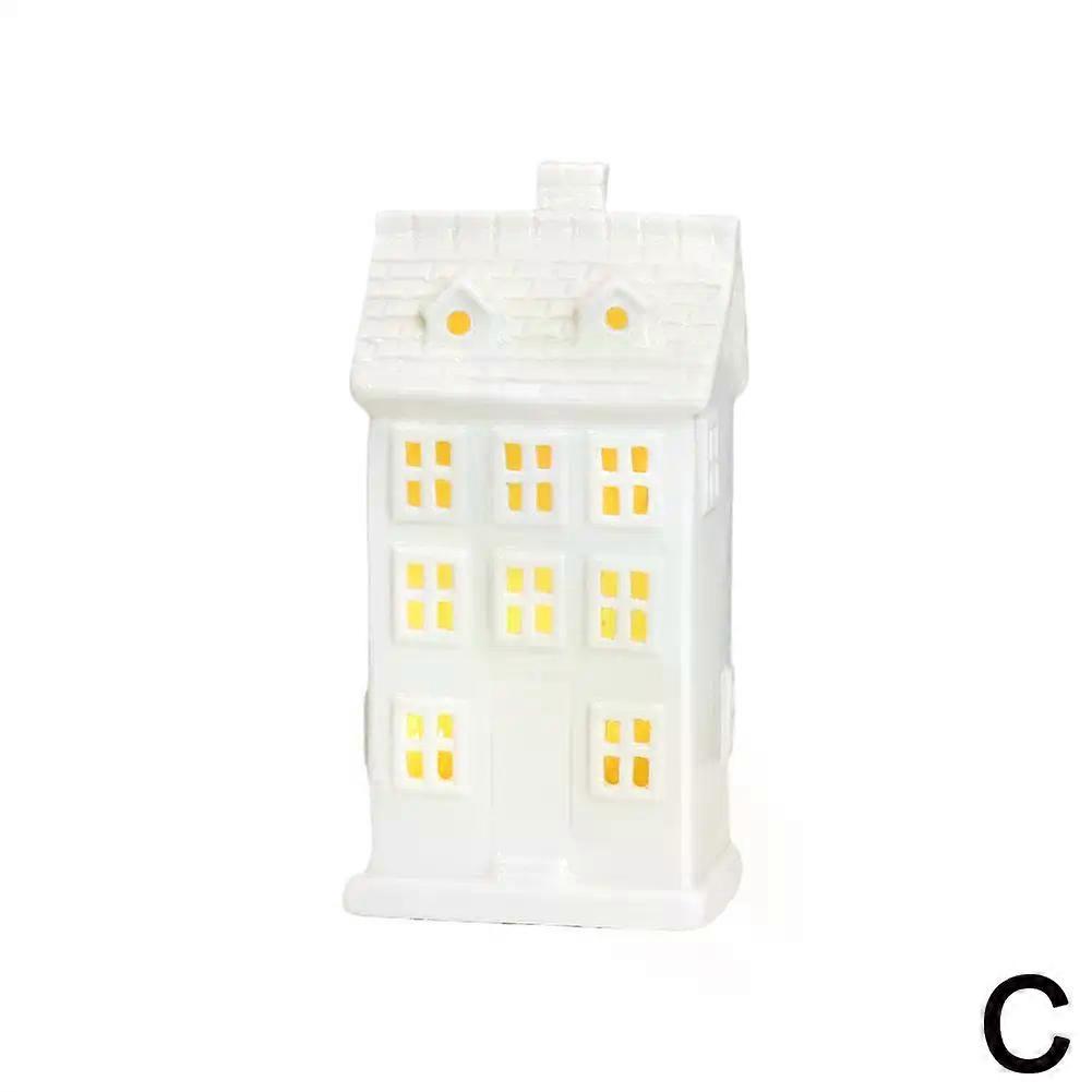 Maison d'arbre de no?l en c��ramique, ornement lumineux cr��atif, sc��ne de bureau de neige, petite d��coration de no?l G5Q9