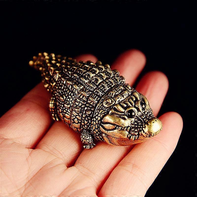 Antique Bronze Crocodile Statue Home Ornaments Retro Copper Animal Figure Feng Shui Business Decorations Crafts