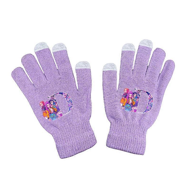 K Pop Demon Hunters Girls Boys Gloves Kawaii Cartoon Letter Printed Knitted Gloved Winter Warm Anime Accessories Kids Gifts