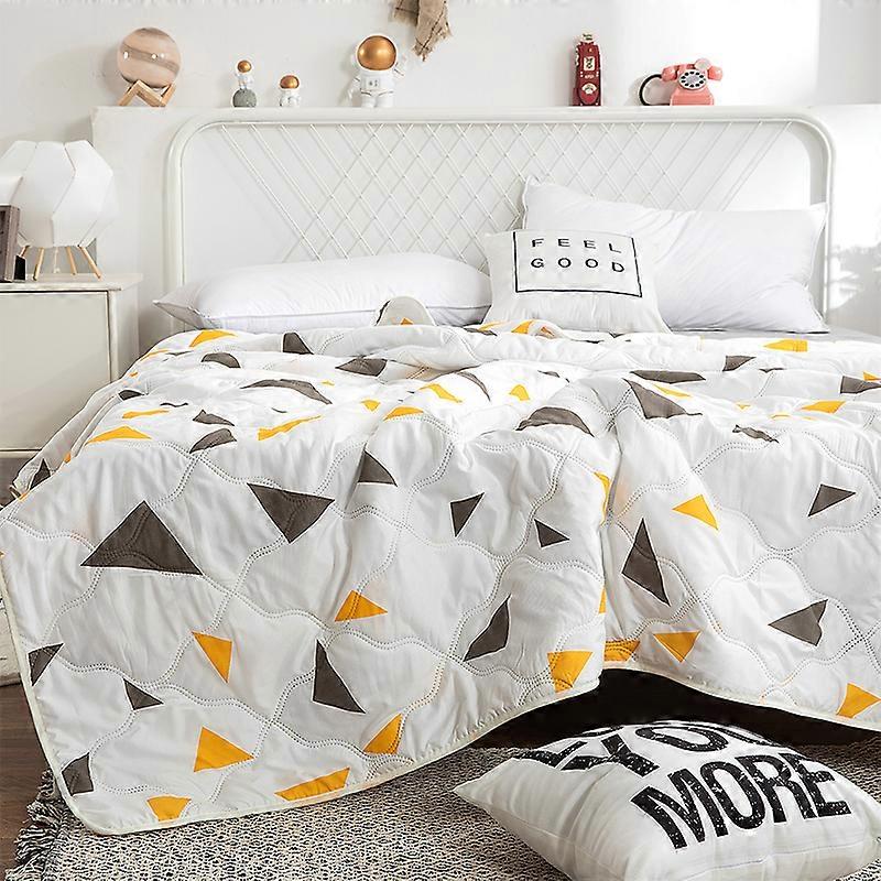 Geometric Triangle Pattern Summer Quilt-Lightweight Breathable Cotton Bedspread for Summer Yellow & Gray Design