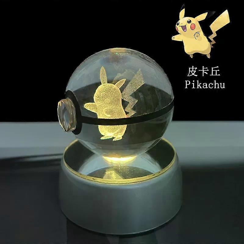 Pokemon 3D Crystal Ball Pikachu Mew Gengar Charizard Figurines LED Lamp Base Mini Pokeball Glass Ball Collecting Toys Kids Gift