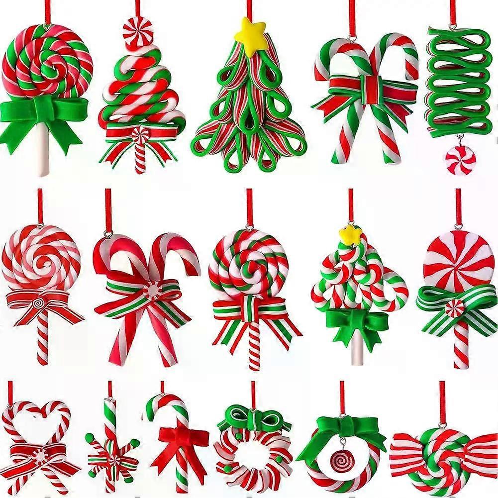 D��corations de no?l color��es en bois, pendentifs suspendus pour bonbons, canne en argile, arbre polym��re, menthe poivr��e, S3O7, 16/32 pi��ces