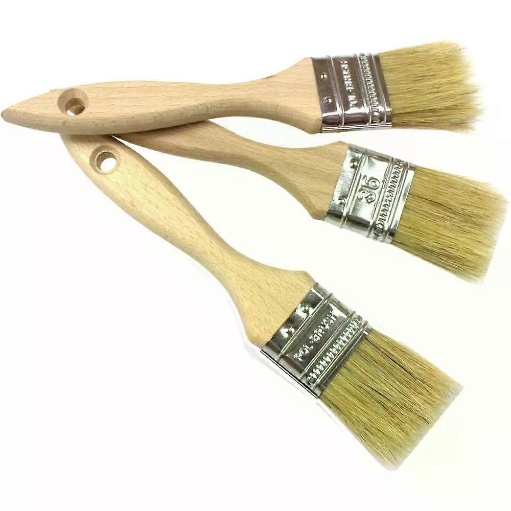 3PCS BBQ Brush Pig Hair Paint Brush Wooden Handle 1.5 Inch Soft Hair Painting Brushes for Wall and Furniture Paint Tool Set