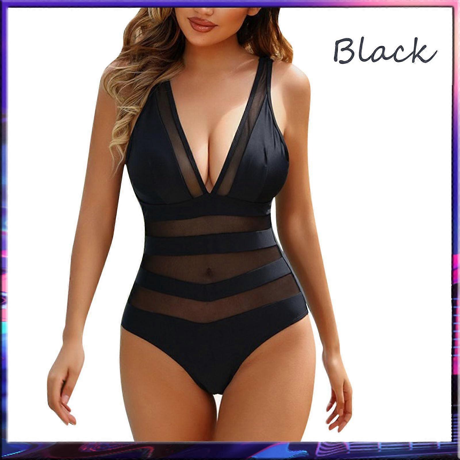 Maillot de bain noir une pi��ce, sexy, d��collet�� plongeant en V, amissi��, dos nu, slim, pour la plage, en dentelle, taille haute, avec soutie