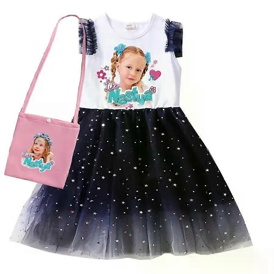 Russia Lovely Like Nastya Clothes Baby Girls Cartoon Casual Dresses & Wreath Bag Kids Wedding Princess Dress Children's Vestidos