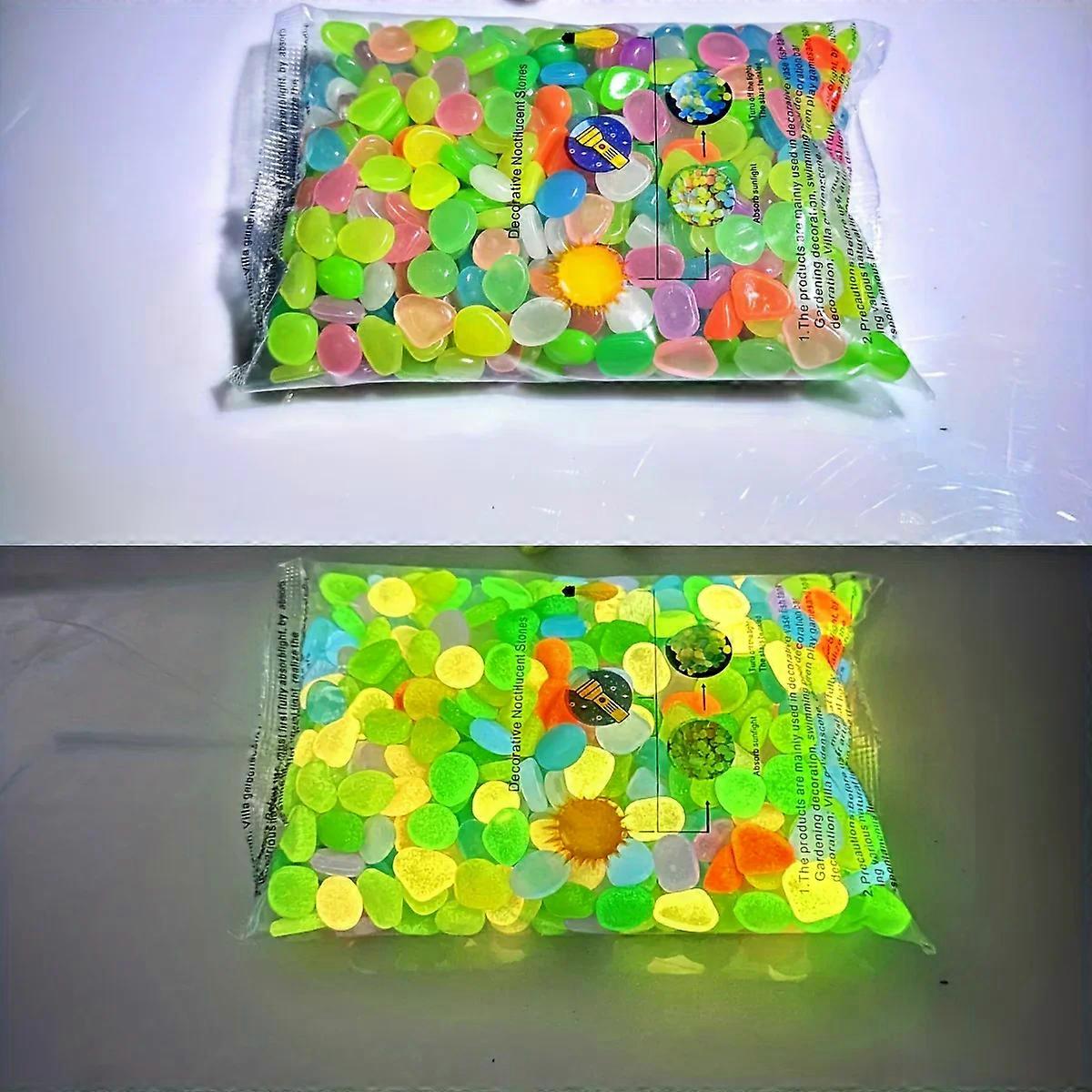 100 pi��ces de galets qui brillent dans la nuit, pierres lumineuses en r��sine pour paysage, chemins de jardin, plantes en pot, parcs, pierre