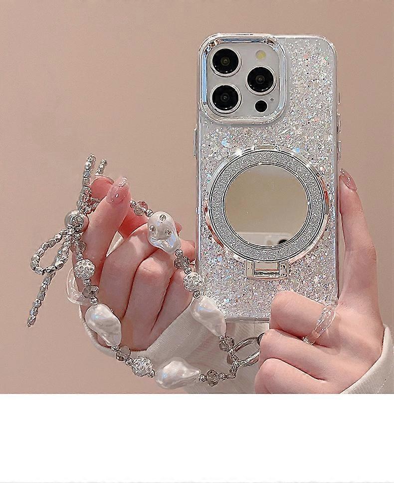 Suitable Iphone 16 15 14 13 12 11 7 8 6 Xr Promax Pro Plus X XS Mini Phone Case Luxury Glitter Mirror Holder Silver Ladies