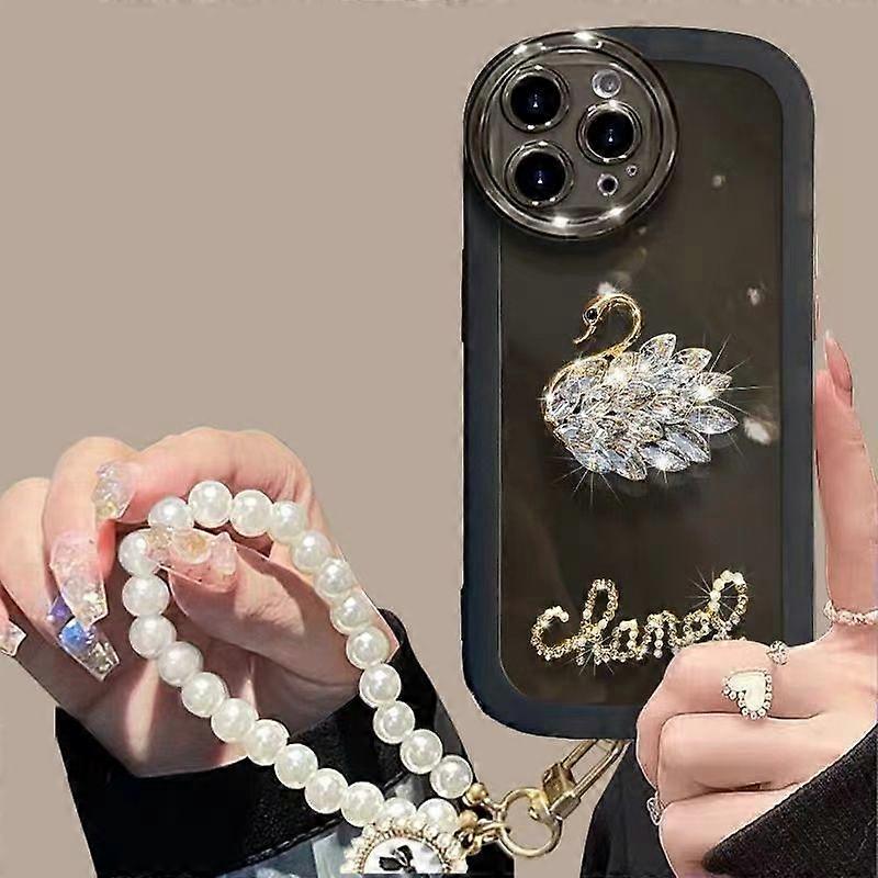 Apple 16 15 Pro Plus IPhone 14 13 12 11 8 7 6 Se X Xs Promax Luxury Rhinestone Swan Pearl Bracelet Transparent Phone Case