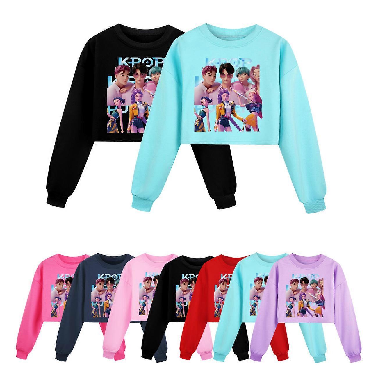 Hot Huntrix Kpop Demon Hunters Children's Round Neck Hoodie Anime Girls Movie Fans Gift Fashion Casual Short Top Sweatshirt 5056
