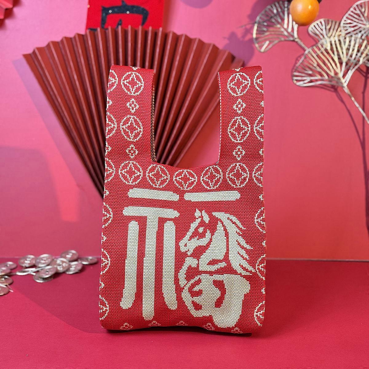 2026 Horse Year Cartoon Mascot Pony Knitted Gift Bag Handheld Candy Bag Mini Knot Wrist Bag Cute Tote Bag Reusable Shopping Bags