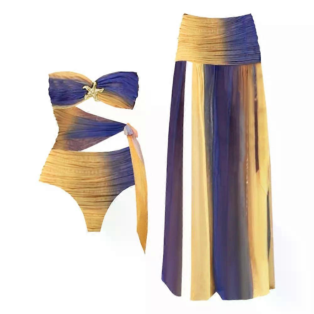 2 Pcs Hollow Swimsuit Sexy Women Bikini 2025 Cut Out Swimwear Female Swimming Suit Long Skirt Deep V Biquini Bodysuit Beachwear