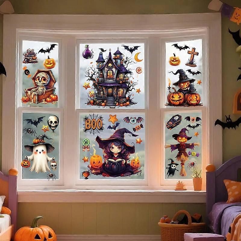 Halloween Window Sticker Pumpkin Bat Castle Pattern Wall Stickers Halloween Decals