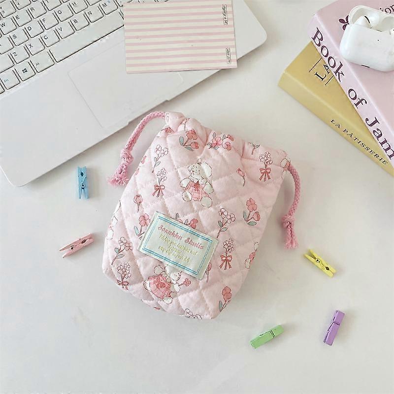 INS Style Floral Storage Bag Drawstring Drawstring Pocket Soft Cotton Anti Fall Cosmetic Bag Sundry Storage Camera Bag