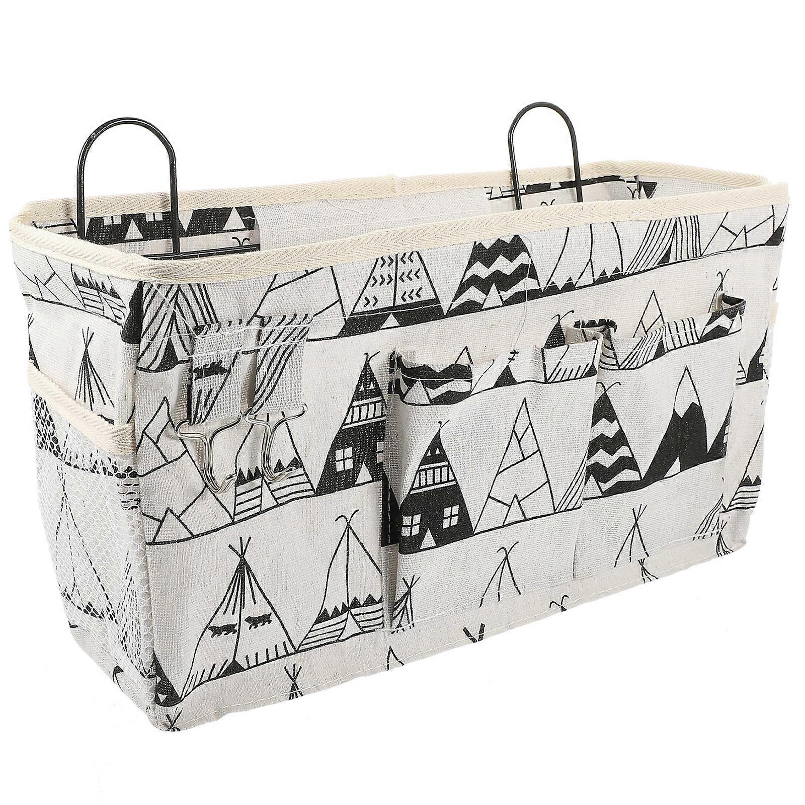 Bedside Storage Bag Hanging Organizer 3Pcs Cotton Linen Stainless Steel Iron Art Bracket Space Saving Design For Home Usage