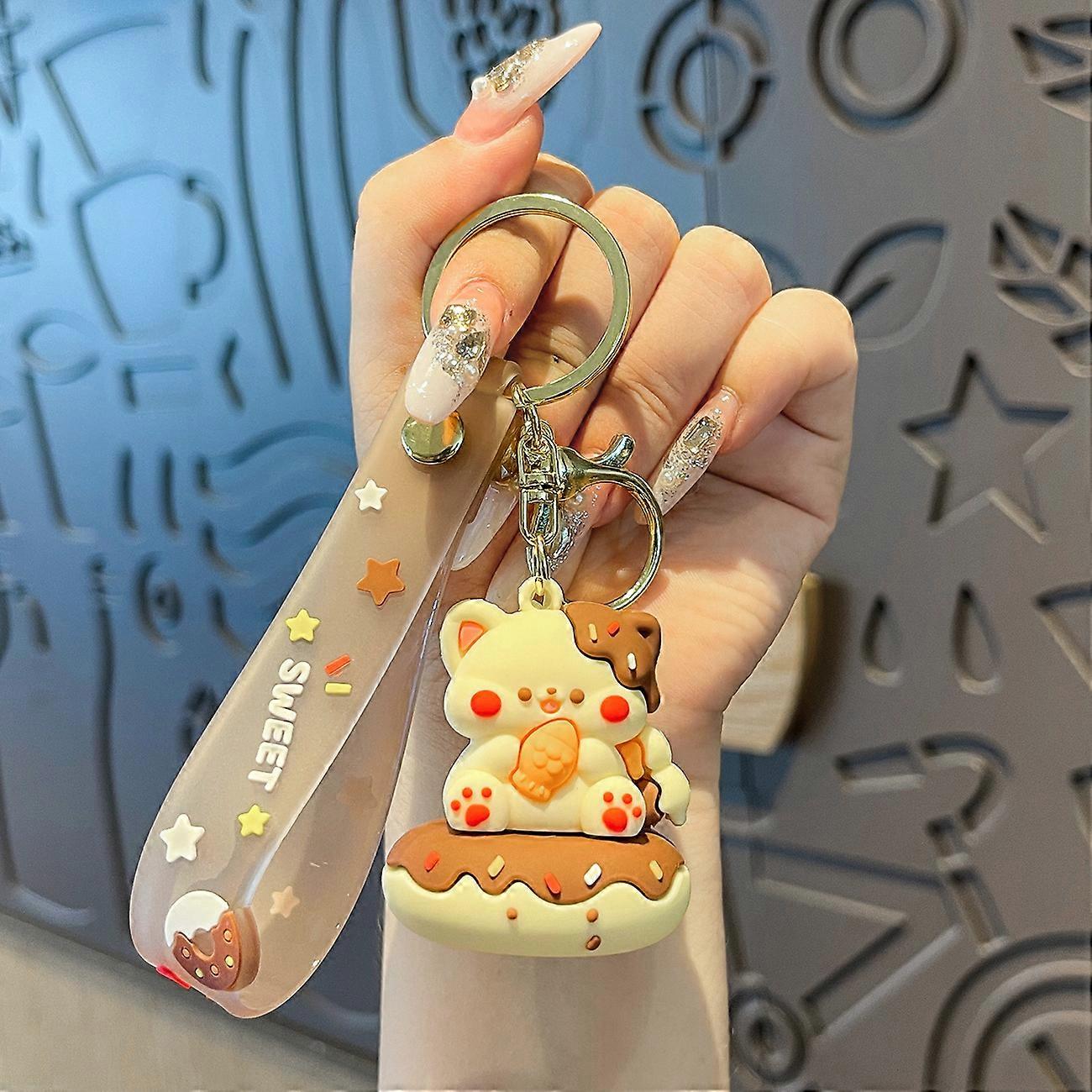 Creative Cartoon Gourmet Animal Keychain Kawaii Donut Frog Rabbit Doll Kid Toy Keyring for Women Bag Pendant Keyfob Jewelry Gift