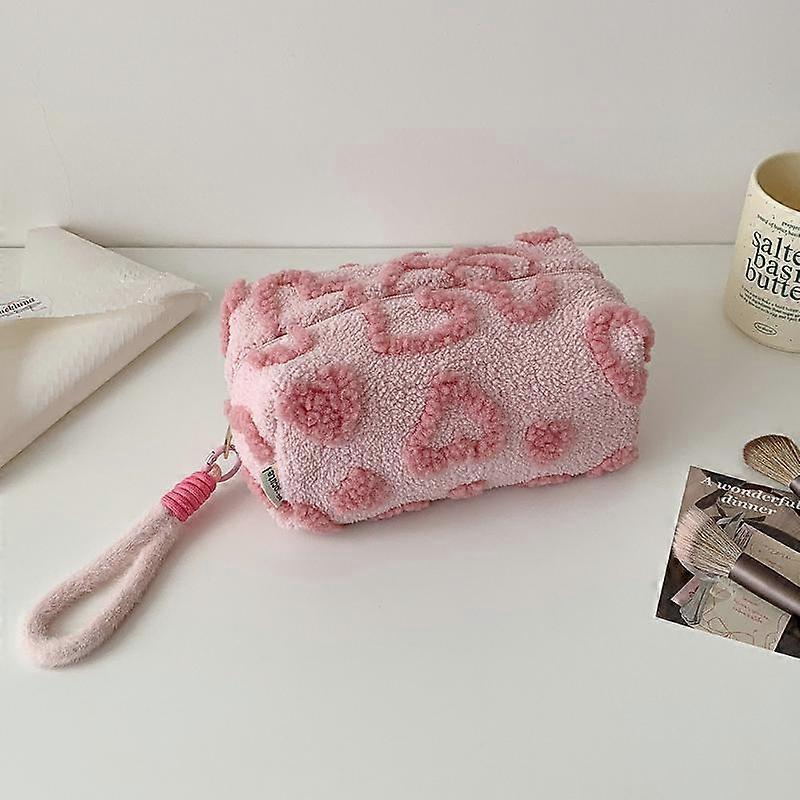 NEW Plush Makeup Bags With Handle Soft Travel Cosmetic Storage Bag Portable Love Print Organizer Pencil Case Cute Clutch Pouch