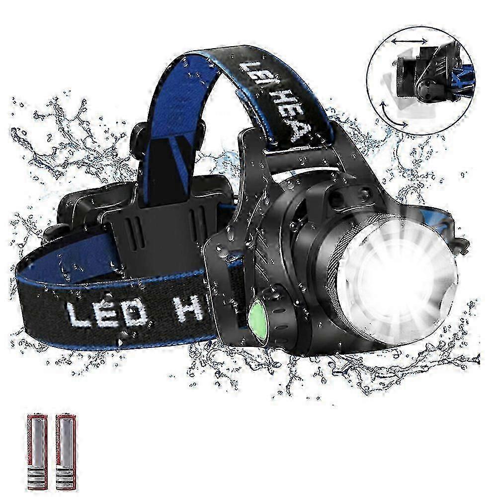 Rechargeable LED Headlamp with 4 Light Modes, 8000 Lumens, Waterproof, Adjustable Focus and