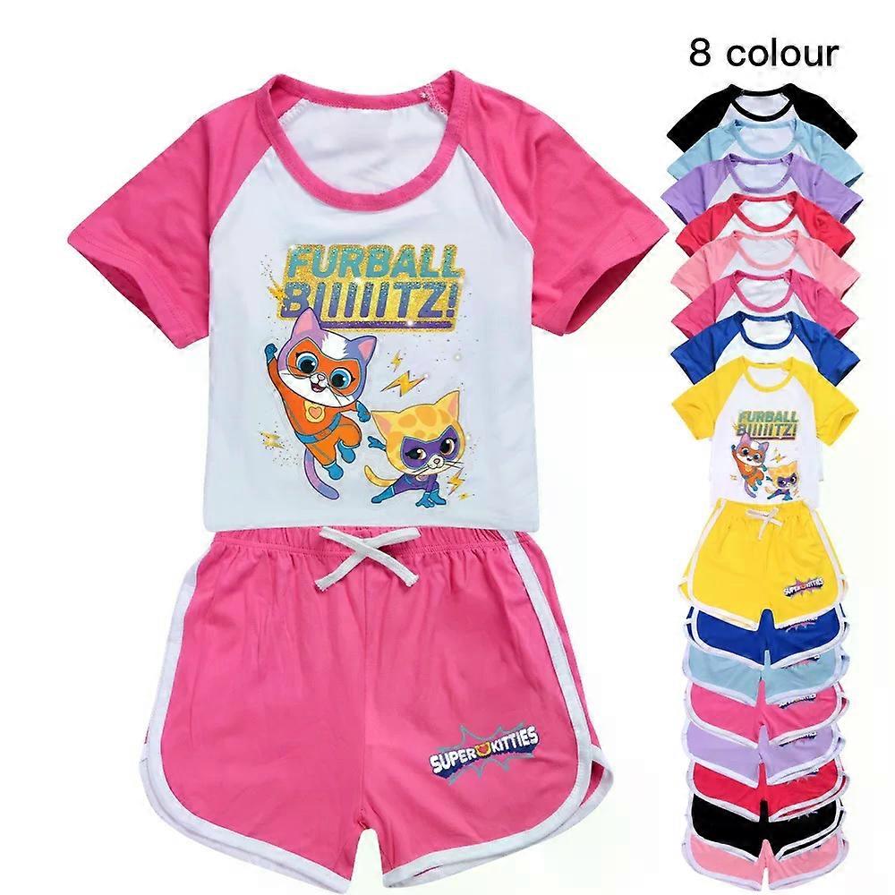 2024 Summer Anime Super kitties Tracksuits Kids Short Sleeves Pyjamas Baby Girls Cartoon T-shirts+Shorts 2pcs Set Children Sleep