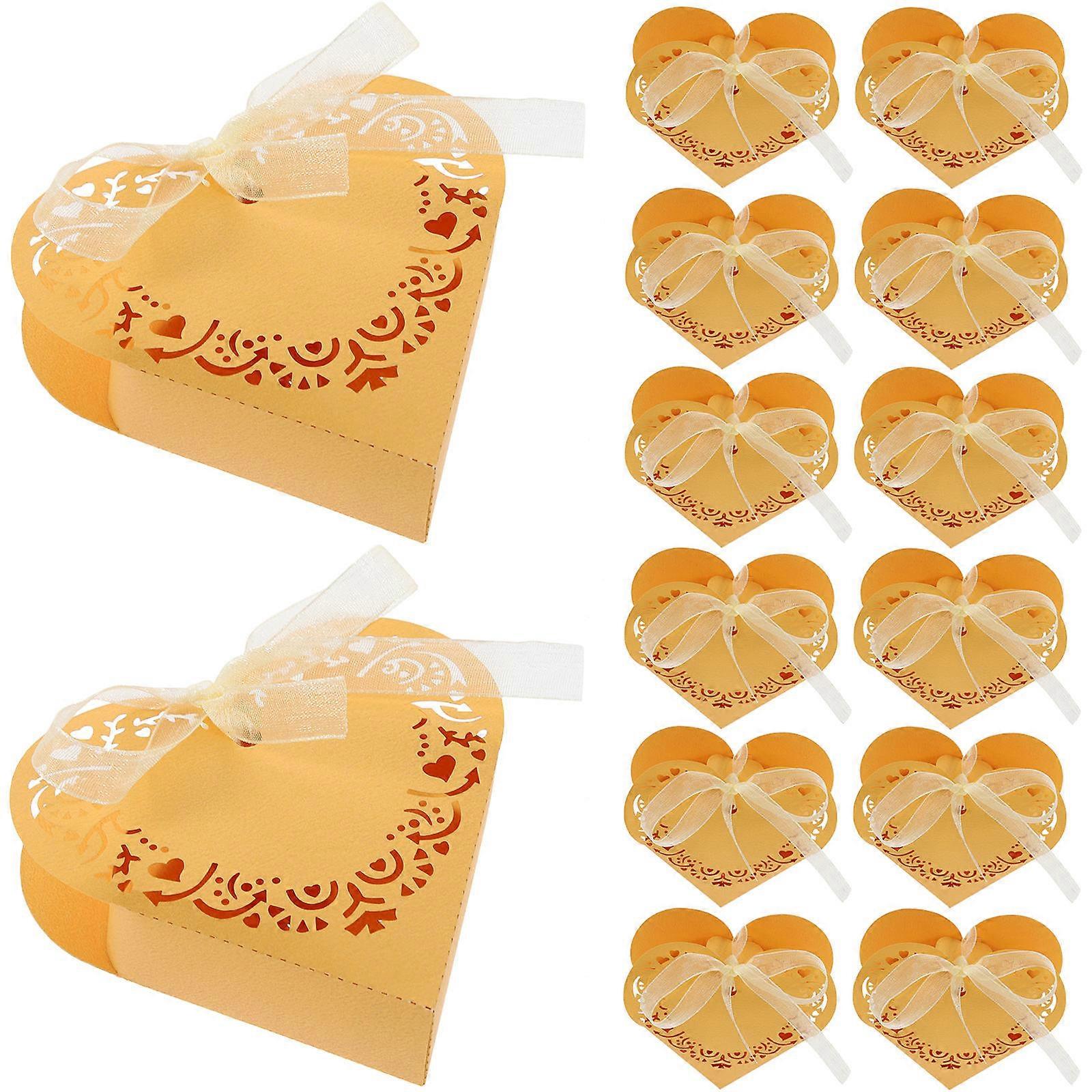 These delicate candy boxes are made of safe material, lovely and delicate. They can be used for wrapping a variety of candies. You can decorate your gift with them. Suitable size, can be used to hold candies and biscuits, your child must like it very much. Features -Color:Golden -Material:Paper -Size:9.00X9.00X2.50cm/3.54X3.54X0.98in - Designed with heart pattern, could also be used as decoration to the festive atmosphere. - Widely applied for birthday, weddings, Christmas, Thanksgiving, New Years, family gatherings, weddings, parties, banquets and other scenes. - Can be used as baby shower, birthday party, bridal shower, wedding and other occasions decoration supplies. - Hollow candy boxes will add more fun to your families or friends, and they will enjoy more fun on this important day. - Candy Boxes add a personalized feel when giving gifts and are perfect for candy, chocolate boxes, party gifts and small gifts. Package list: 3 pcs x 50 × paper candy boxes
