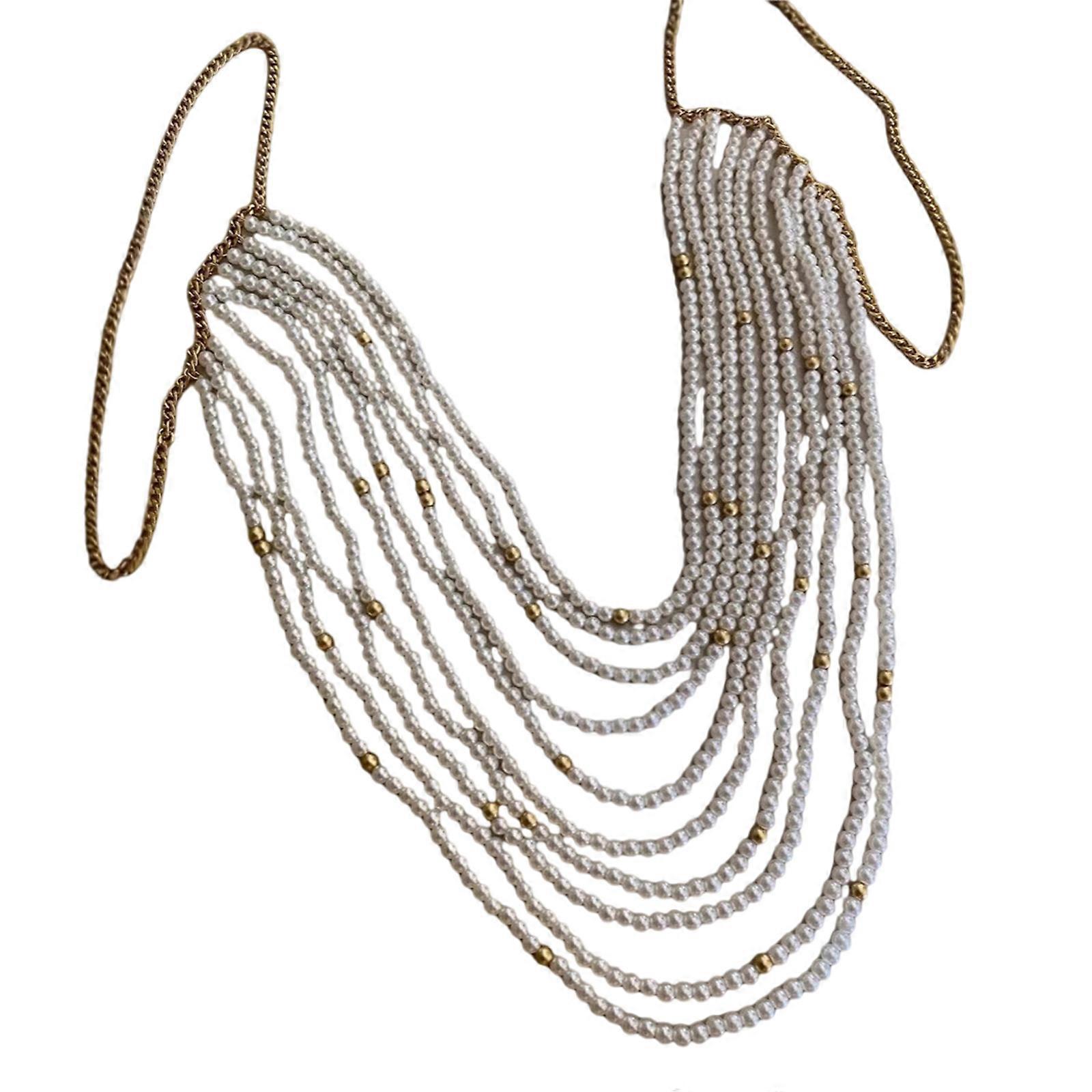 Women's Multi Layer Resin Pearls Body Chain Necklace Fashion Body Jewelry Shoulder Chain for Elegant Beach Party Outfits Multicolor
