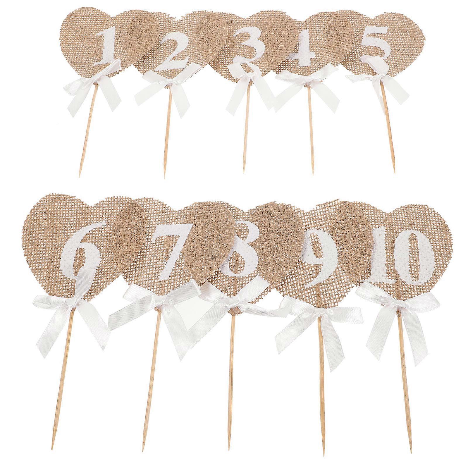 Vintage Burlap Wedding Table Numbers for Wedding 1-10 Rustic Jute Heart Cards