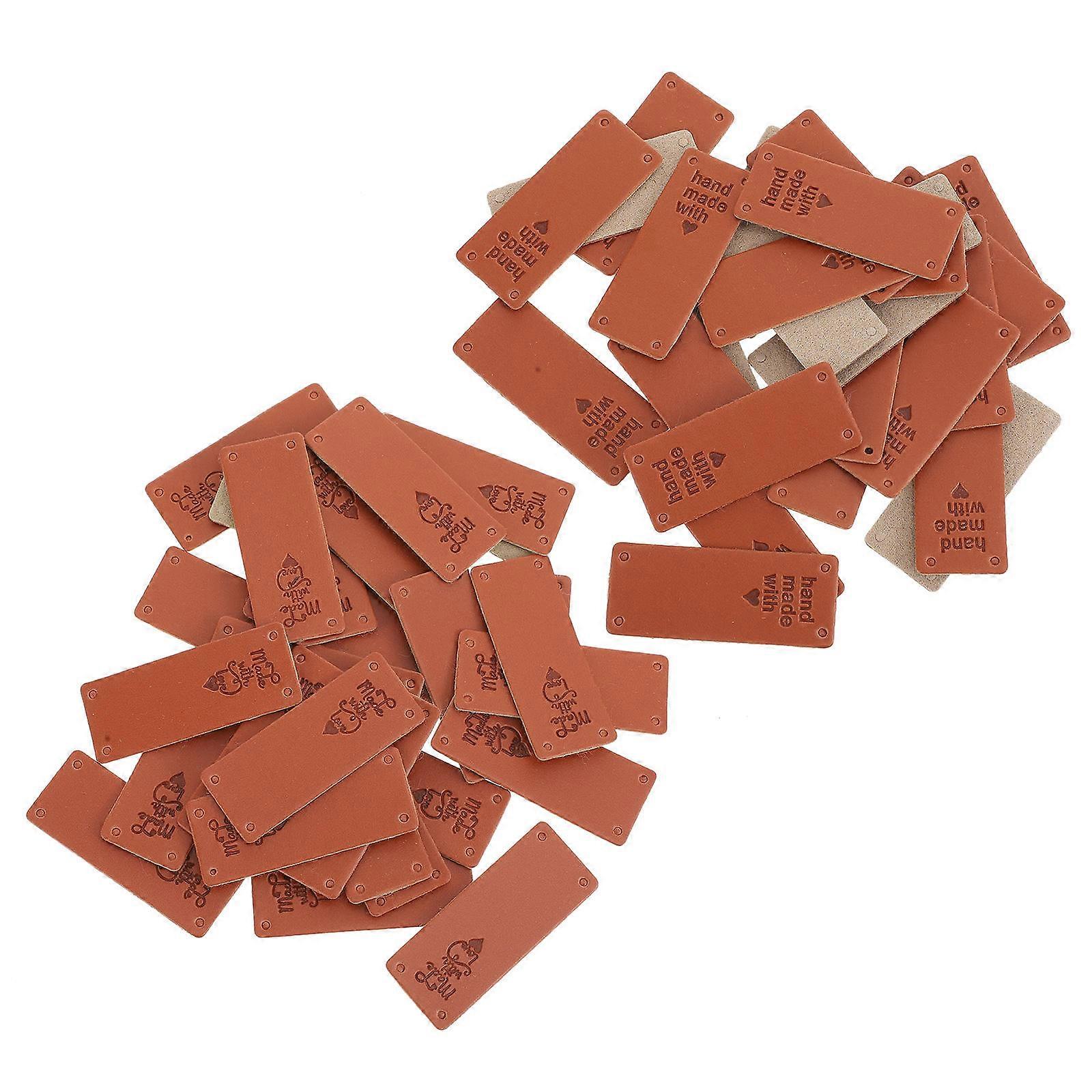 100Pcs Brown Synthetic Embossed Labels for Jeans Hats Apparel Craft Decoration with Hole