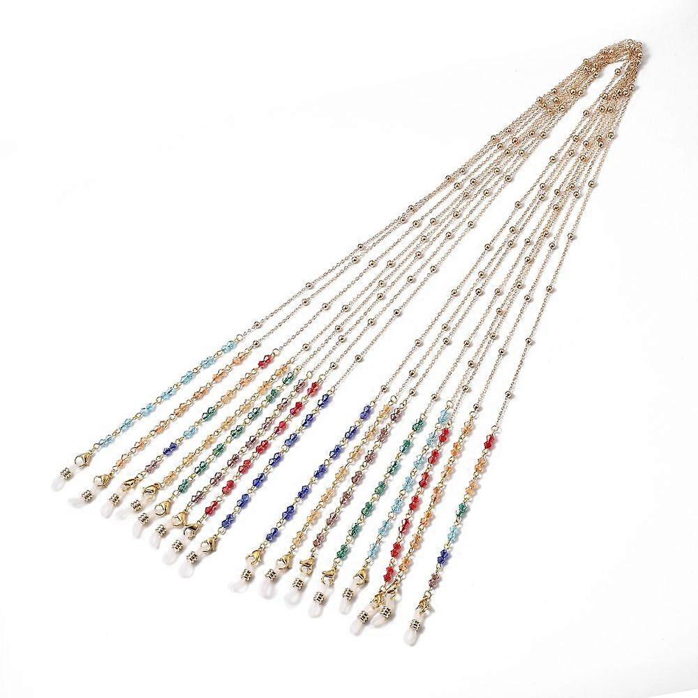 Eyeglasses Chains sets Neck Strap for Eyeglasses with Brass Cable Chains Bicone Glass Beads 304 Stainless Steel Lobster Claw Clasps and Rubber Loop En