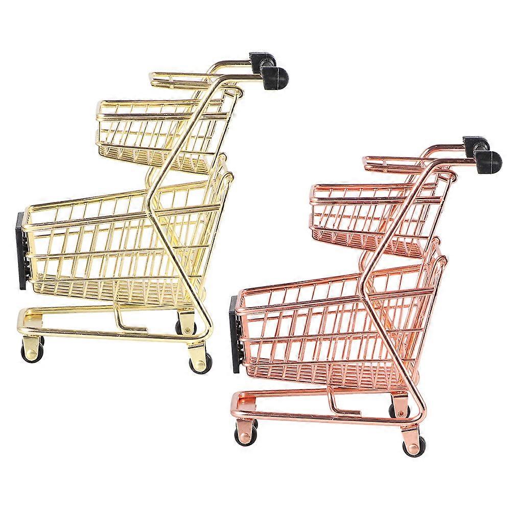 Mini Shopping Handcart Double-Layer for Decoration 4Pcs Assorted Colors