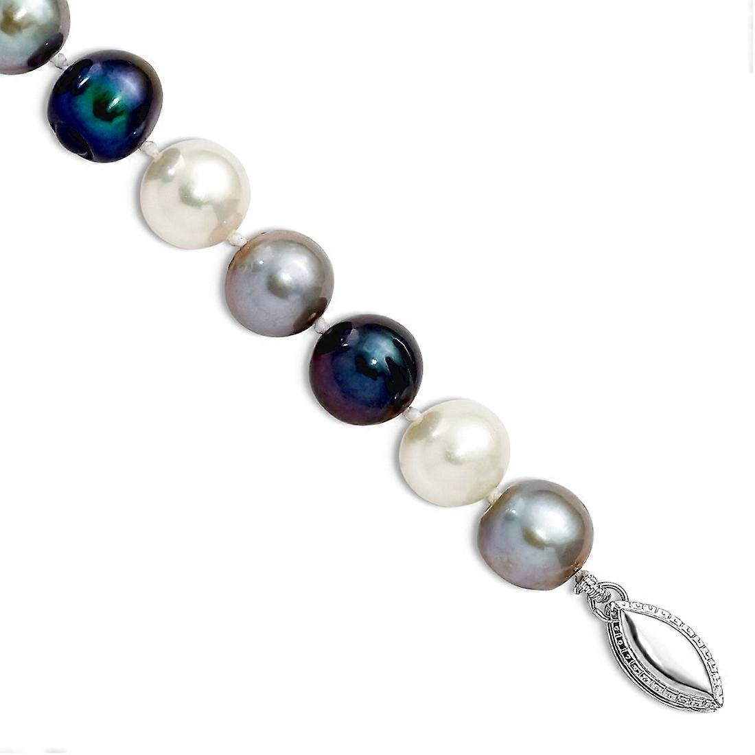 925 Sterling Silver Rhodium Plated8-9mm Bk Gr Wt Semi-round Fwc Pearl Bracelet 7.5 Inch Link Bracelet for Women