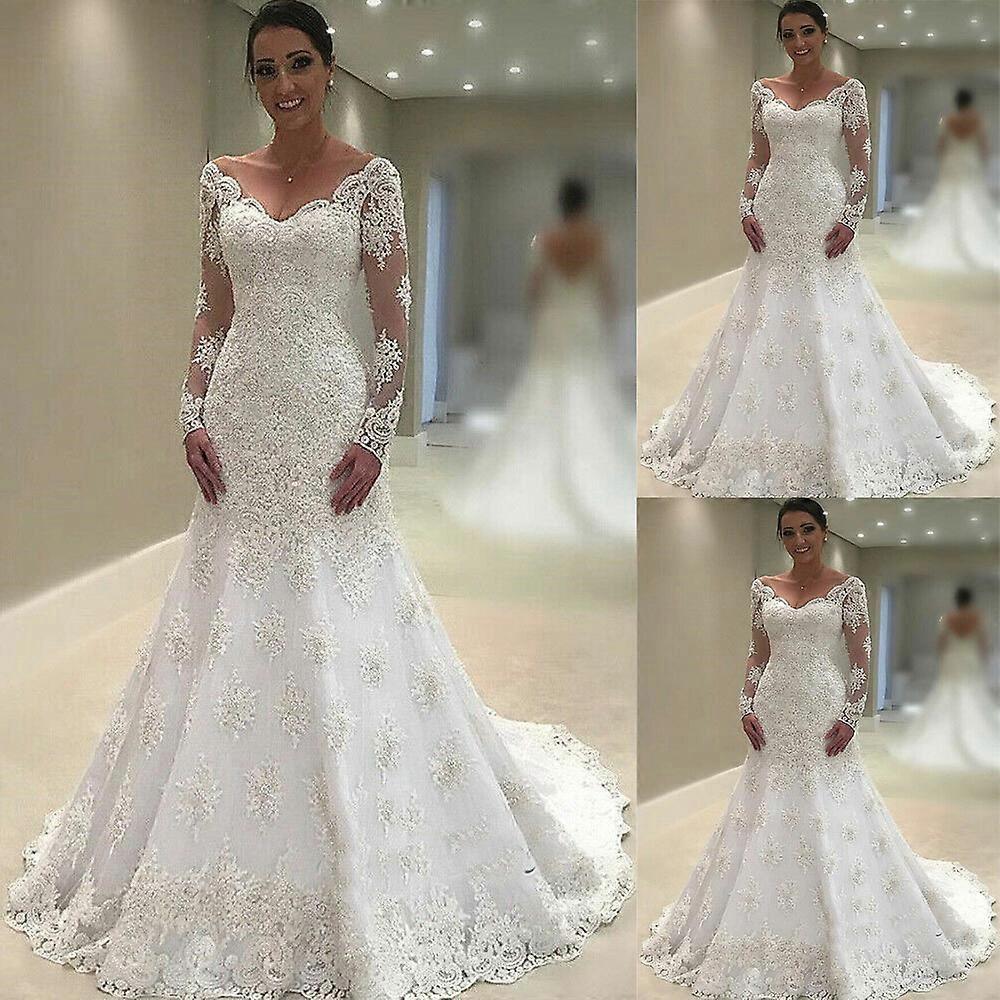 Elegant Long Sleeve Wedding Dresses Mermaid Lace Bridal Gowns V-neck Custom Made