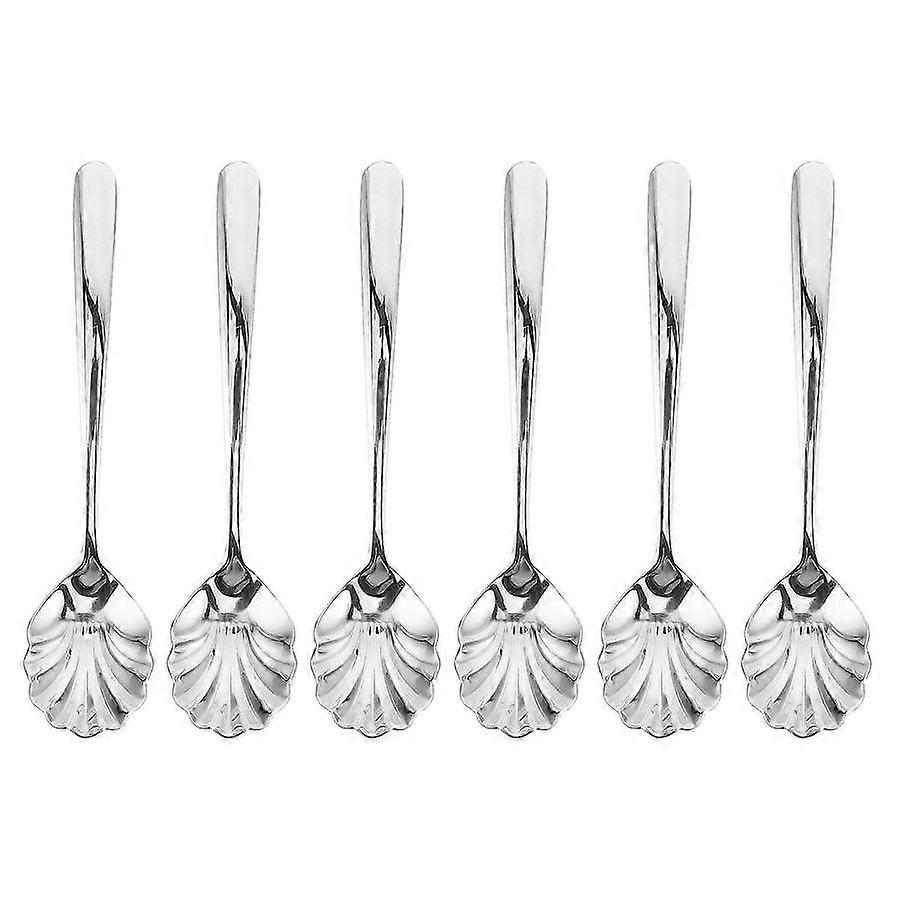 Shell Shape Stainless Steel Dessert Spoons 6pcs for Ice Cream Cake Pudding