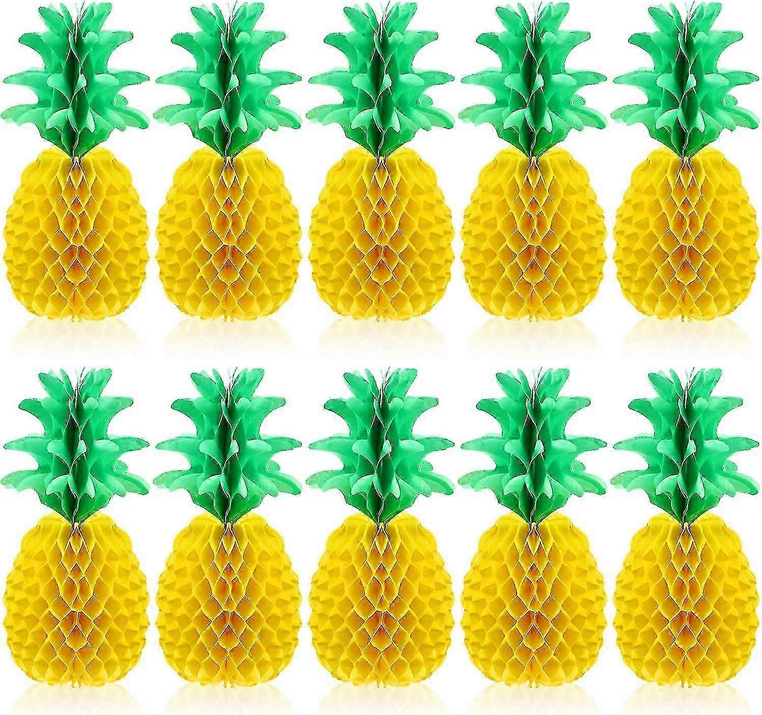 10 Packs 14-inch Pineapple Honeycomb Centerpiece, Pineapple Paper, Hawaiian Luau Supplies, Pineapple Table Hanging Decorations