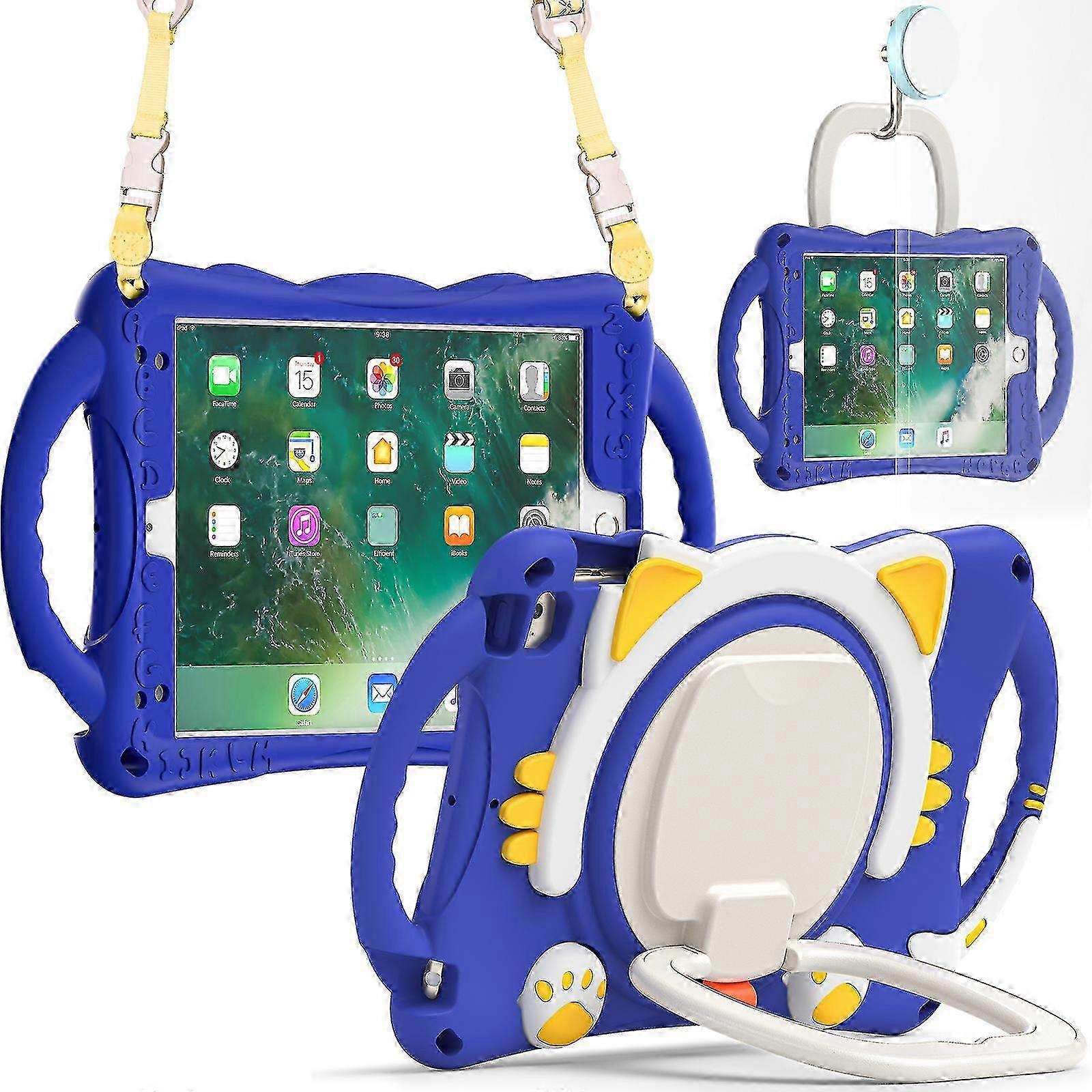 Case Cover For Mini Ipad 1/2/4/4/5 Cat Shell For Kids With Shoulder Strap, Large Ring Stand, Two Portable Handles, Camera Cover