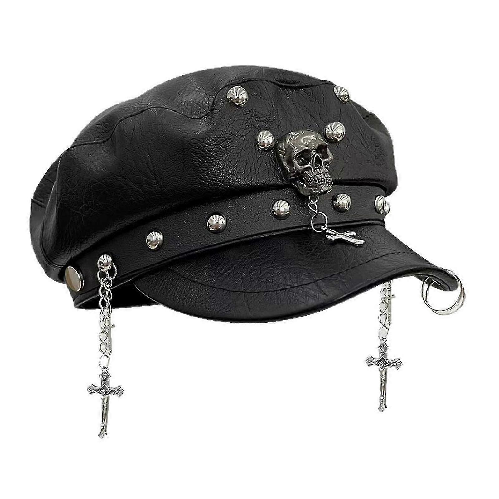 Rivet Studded Beret Hat Flat Top Cap Punk 2000s Soft Pu Cricket Hat For Women Concerts And Street Hiphop Dancing Event Leopard Print