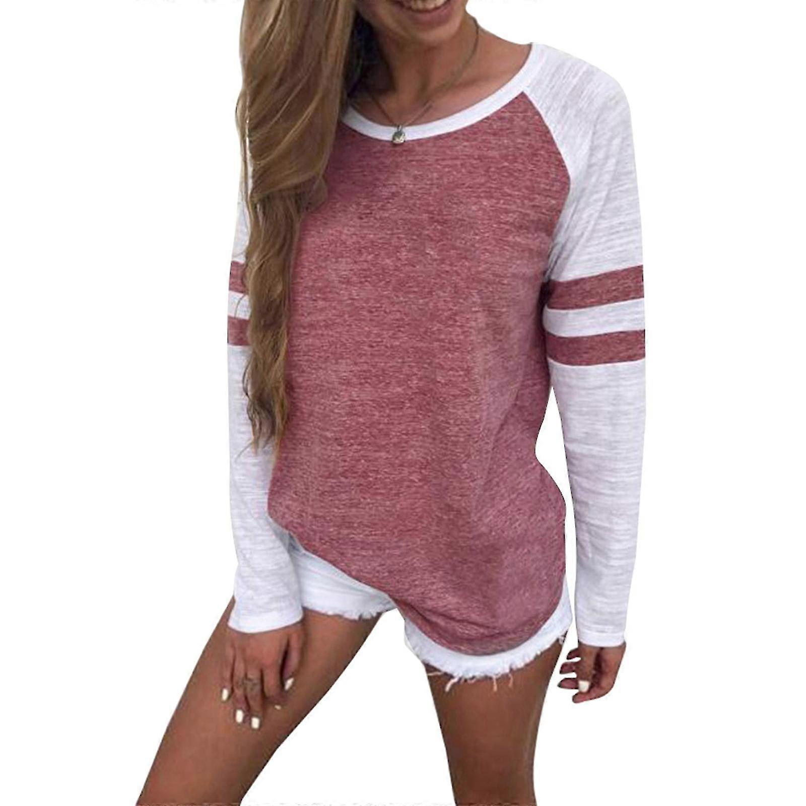 Womens Autumn Striped Splice Long Sleeve Pullover Top Colorblock Crew Neck Casual Loose Raglan Shirts Blouses Streetwear Red Xl