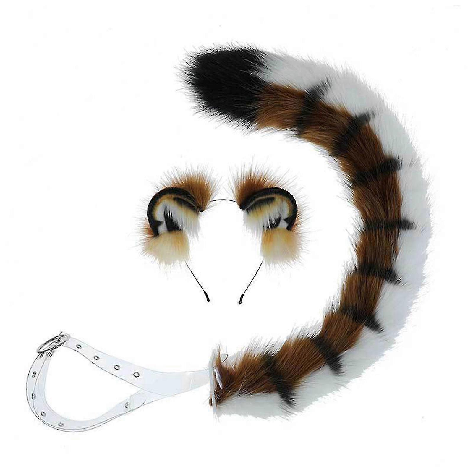 2pcs Tiger Ears Shape Headband And Tail Cosplay Costume Faux Fur Hair Clip Headdress Halloween Birthday Party Set