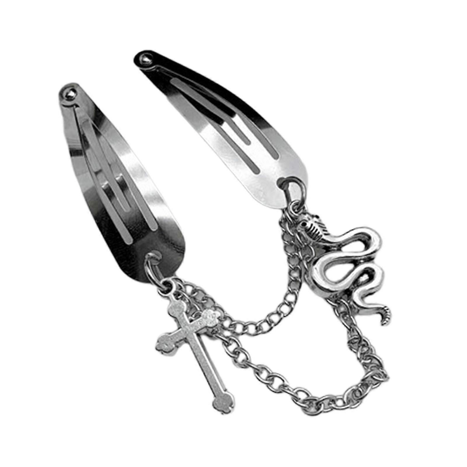 Hair Clip Y2k Girls Snap Clip Headdress Dark With Metal Pendants Women Hair Jewelry Silver Hair Styling Hairpin