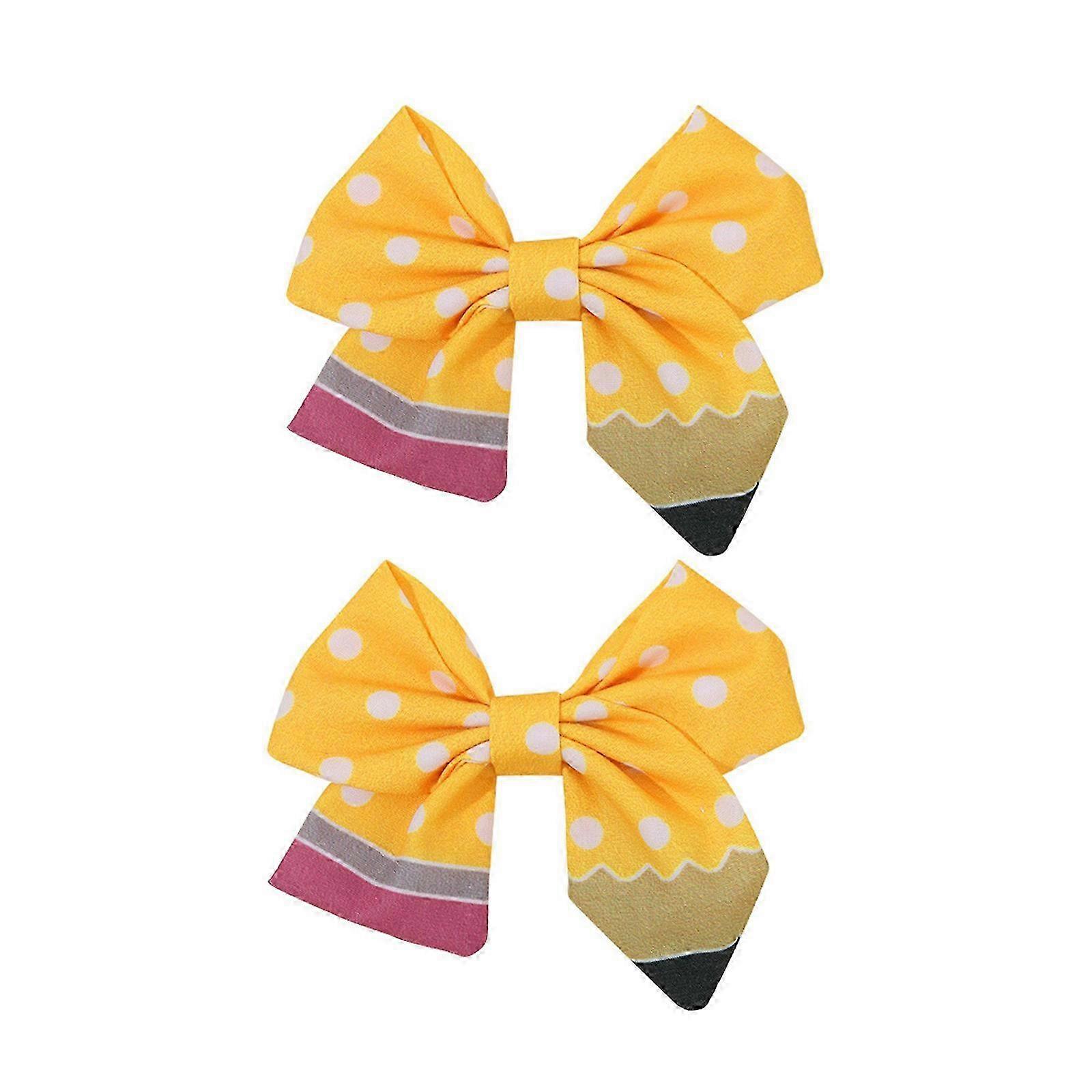 First Day Of School Gift Hair Clip For Student Girls Teachers Pencil Theme Design Hair Bows Classroom Essential 2pcs Multicolor