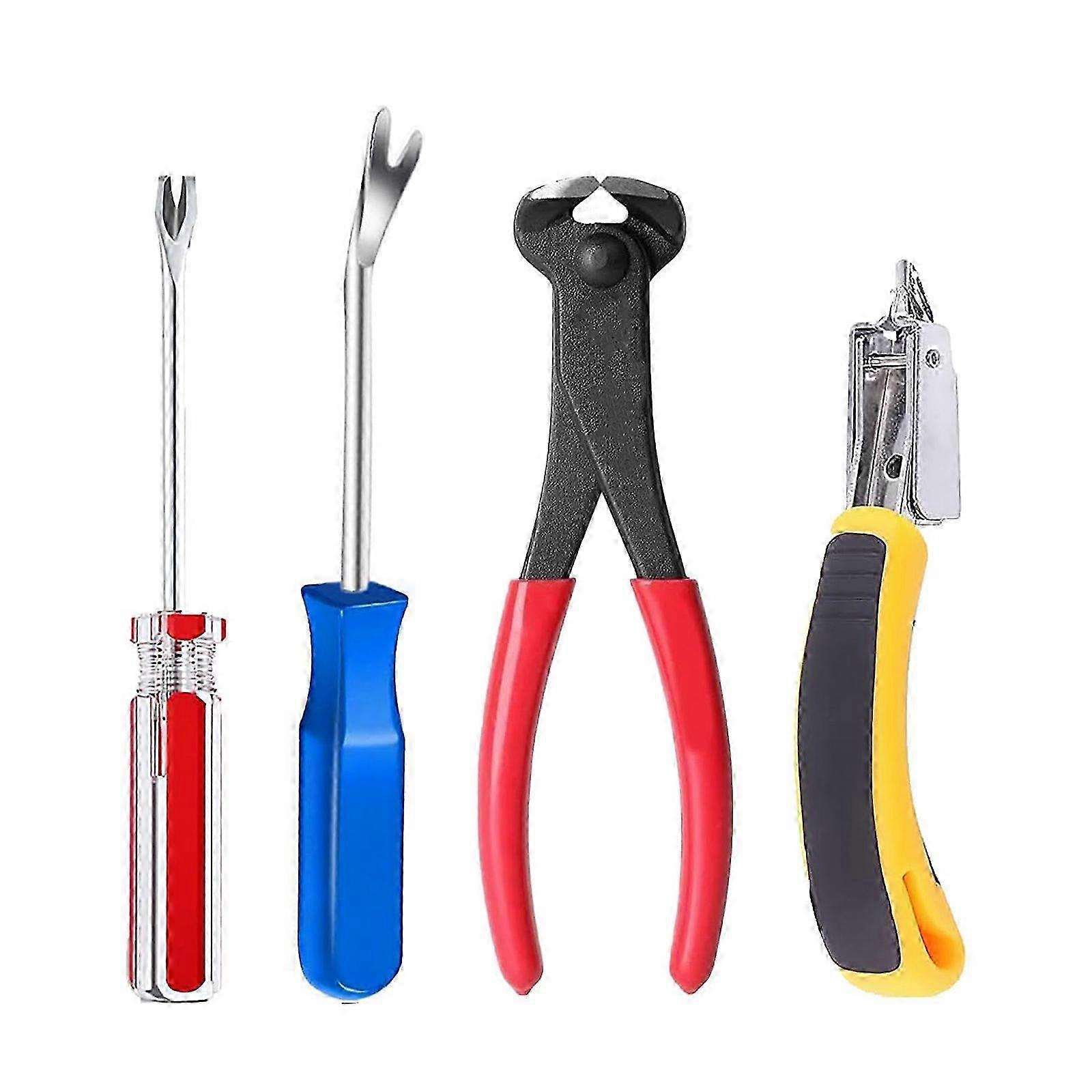 4pcs Upholstery Staple Puller And Nail Remover Tool With End Cutting Pliers Staple Puller Staple Lifter Fastener Remover Multicolor
