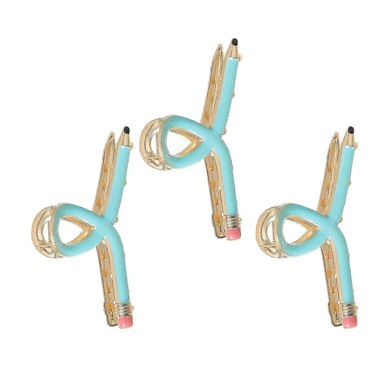 3pieces Teacher Hair Clip Set Metal Pencil Design Hair Claw Clip Styling Accessories For School Event And Theme Party Yellow