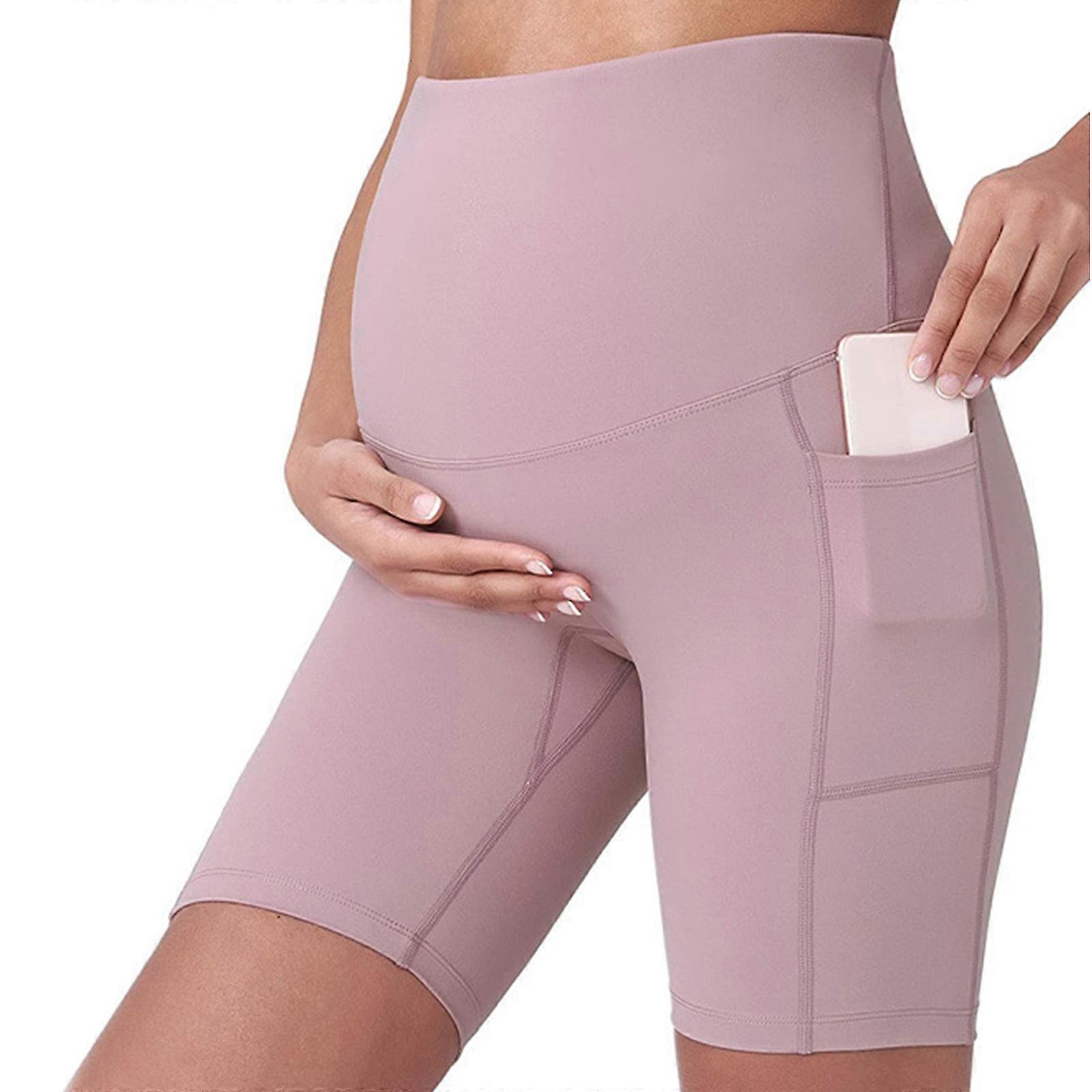 Women Pregnancy Shorts Yoga Leggings With Pocket High Waist Pregnancy Leggings Pilates Shorts For Home Walking Ftiness Pink Xl