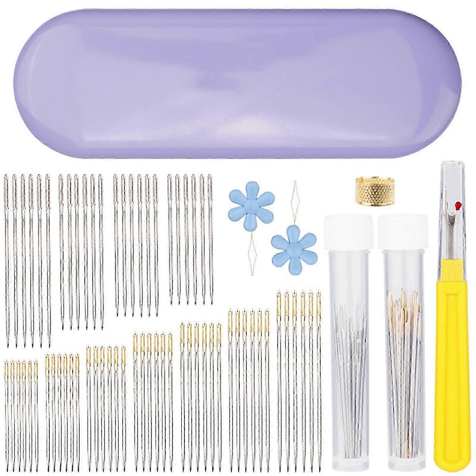 Large Eye Sewing Needle, 11 Sizes Stainless Steel Embroidery Needle With Ripper, Thimble, Threaders And Storage Case Multicolor