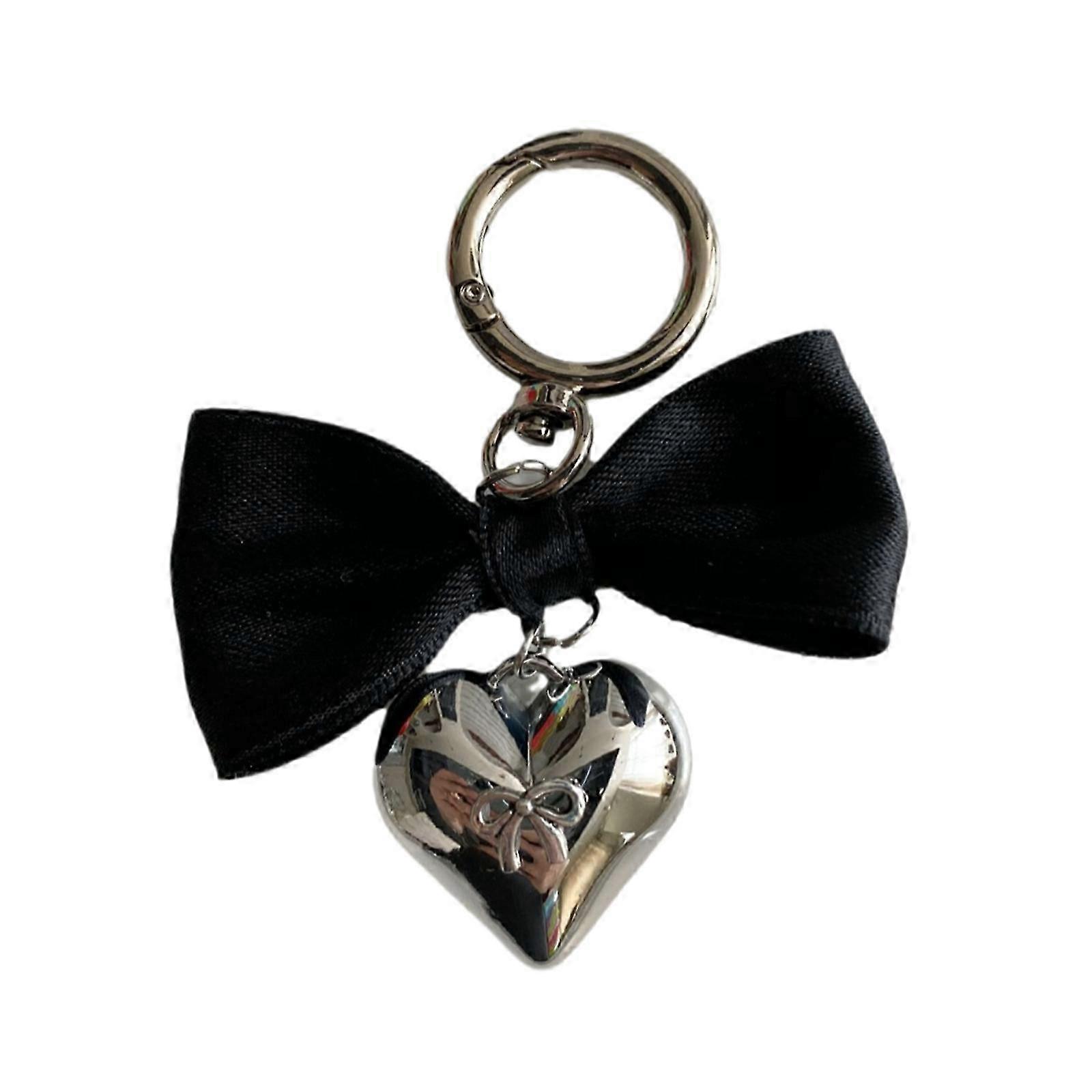 Silver Heart Charm With Bowknot Designs Sophisticated Heart And Bowknot Pendant Keychain Charm For Fashionable Hangings Off White Bow