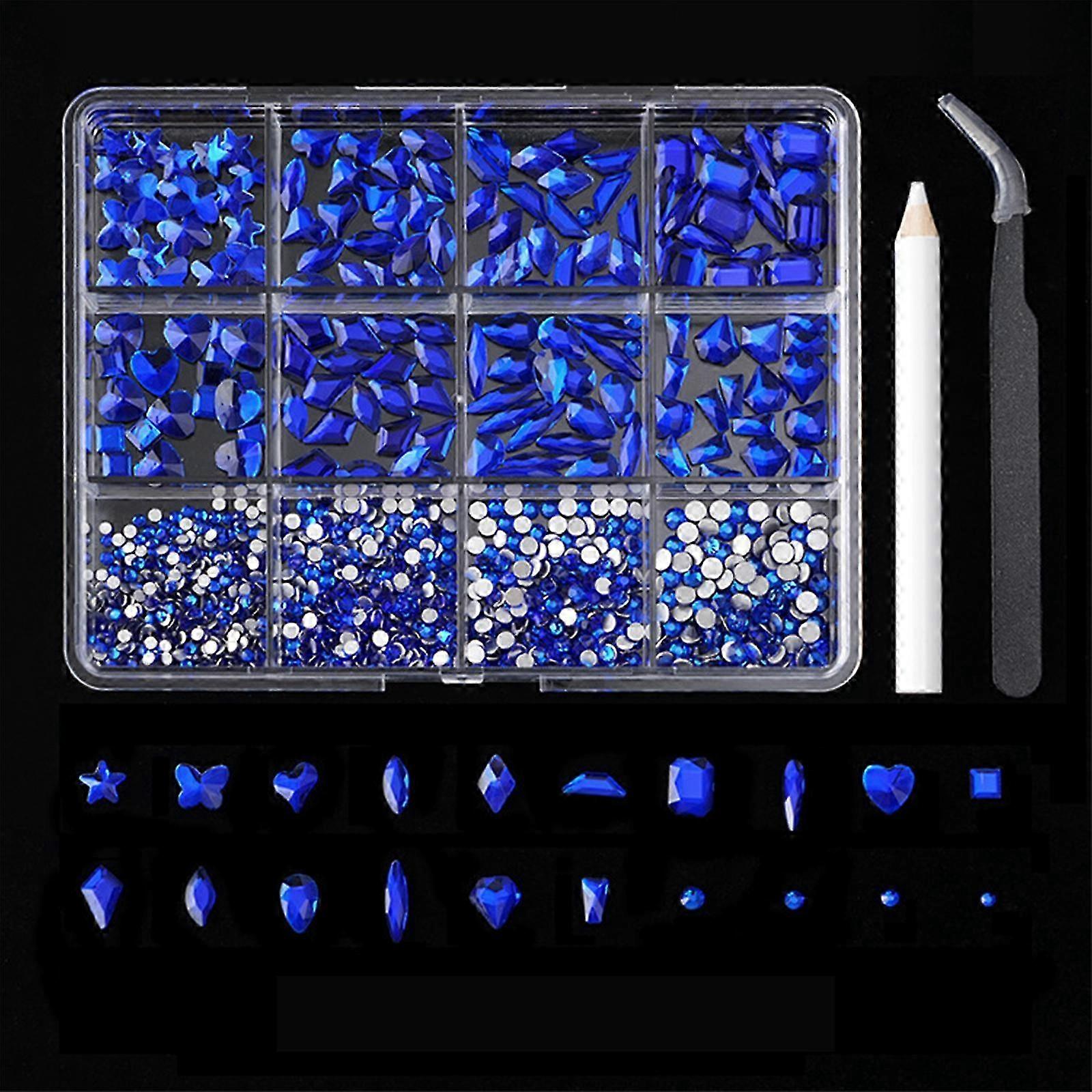 12 Grids Nails Charm Flat Bottom Nail Rhinestones Mix Styles Nail Crystal Gems Special-shaped Nail Stone Gems Purple