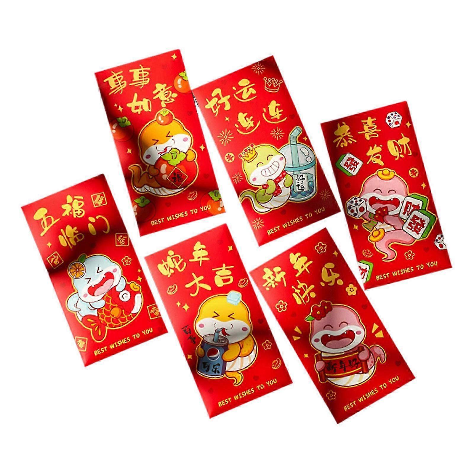 Set Of 6 New Year Redness Envelopes Gold Foil Snake Money Packets Spring Festival Hongbao For Parties And Gatherings Multicolor