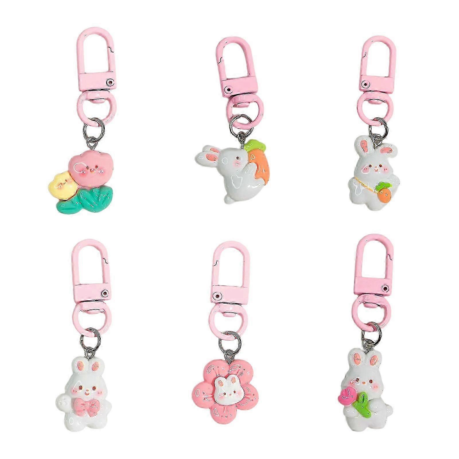 Lovely Rabbit Keychain 6 Pieces Decorative Bag Hanging Pendants For Everyday Use Featuring Flower And Radish Styles