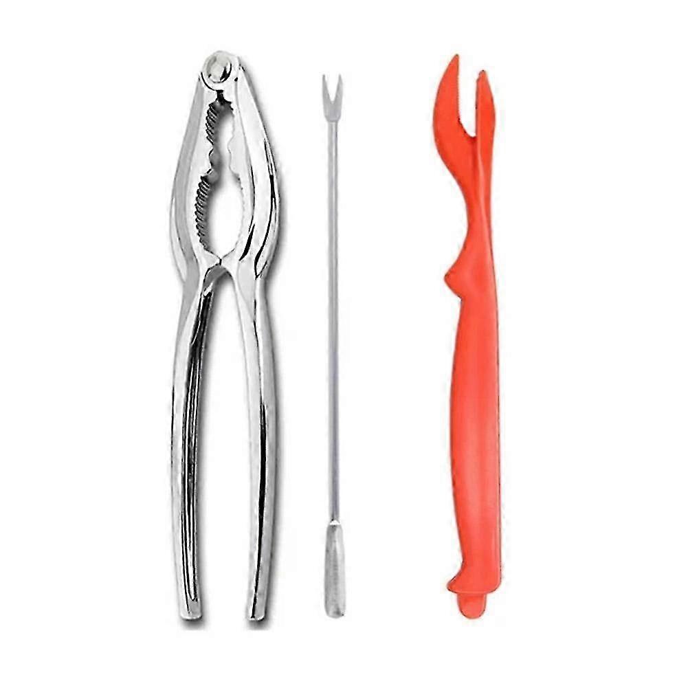 3-piece Steel Crab Cracker Set Heavy Duty Seafood Shell Crackers Forks Tongs Easy Grip Dishwasher Safe