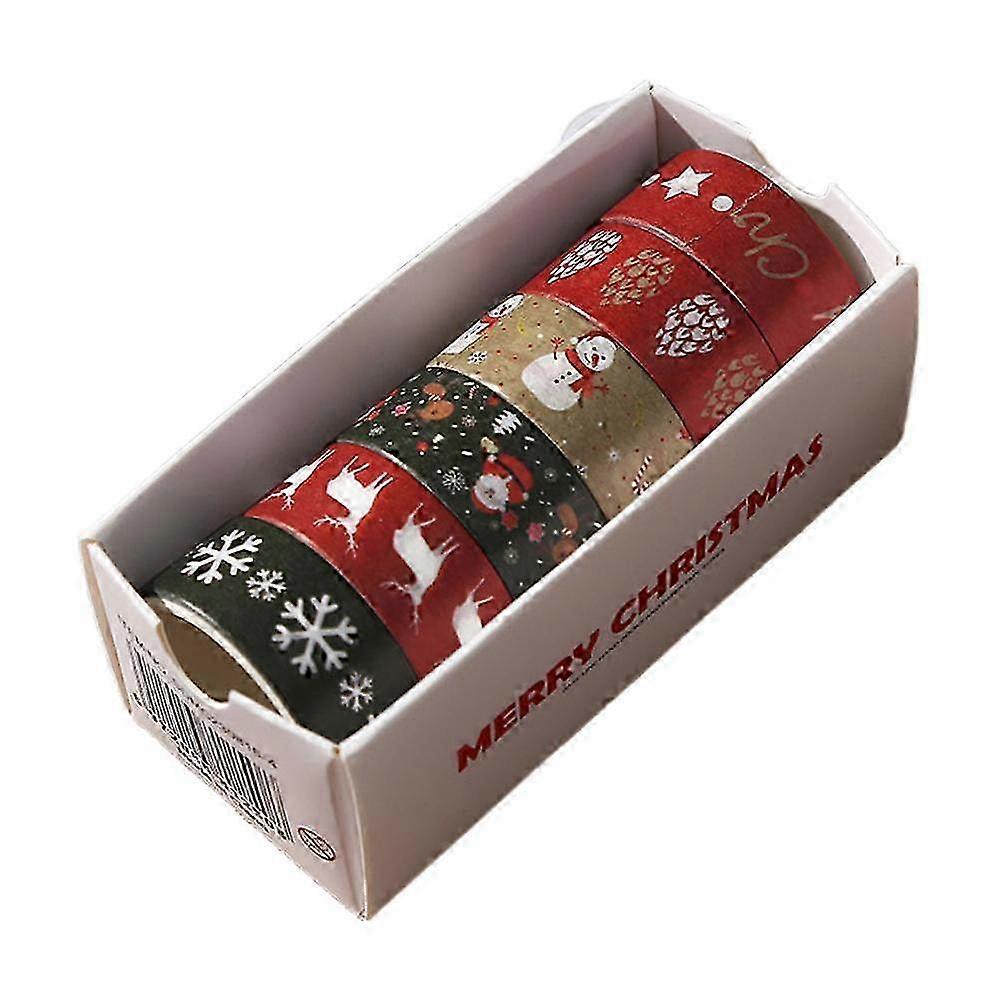 Product name: Tape<br>Product size about : 9.3 × 4.6 × 4.1 cm (3.7" × 1.8" × 1.6")<br>Product color: As shown in the figure<br>Product material:paper<br>product features: <br>6-Roll Christmas Washi Tape Set with Festive Patterns<br>This collection includes 6 rolls of colored tape, each measuring 1.5cm wide and 2 meters long. The variety of classic holiday designs provides ample material for seasonal projects and creative decorating.<br><br>Quality Washi Paper with Reliable Adhesive<br>Crafted from washi material that maintains color vibrancy and resists fading. The gentle adhesive applies smoothly and removes cleanly, making these tapes suitable for paper crafts and delicate surfaces.<br><br>Traditional Christmas Motifs and Themes<br>Features festive patterns including snowflakes, reindeer, Christmas trees, and other seasonal. Each design helps bring a cheerful holiday spirit to your crafts and decorations.<br><br>Versatile for Holiday Crafting and Gift Decorating<br>Ideal for card making, gift wrapping, journal accents, scrapbooking, and festive home decor. A practical way to add a personalized touch to your Christmas celebrations.<br><br>Easy to Tear and Apply Without Tools<br>Simply tear the tape by hand for quick, neat application. User-friendly for crafters at any level, helping you create beautiful holiday projects with ease.<br>Precautions:<br>1.As we all know , the different computers display colors differently, the color of the actual item may vary slightly from the following images.<br>2.If you feel difficult to choose the size, you can feel free to contact mewe will give you some suggestion, but it is for you reference only.<br><br> Shipment includes: A box of tape(6pcs)