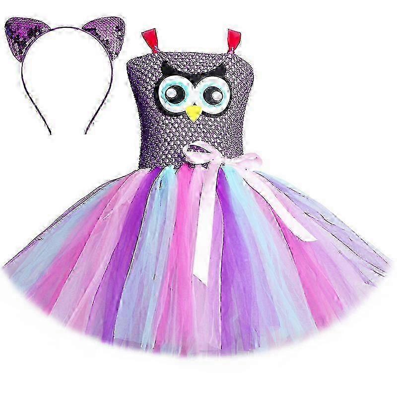 Girls' Mesh Puffy Skirt Cartoon Bird Owl Children's Animal Play Performance Clothing Vxz